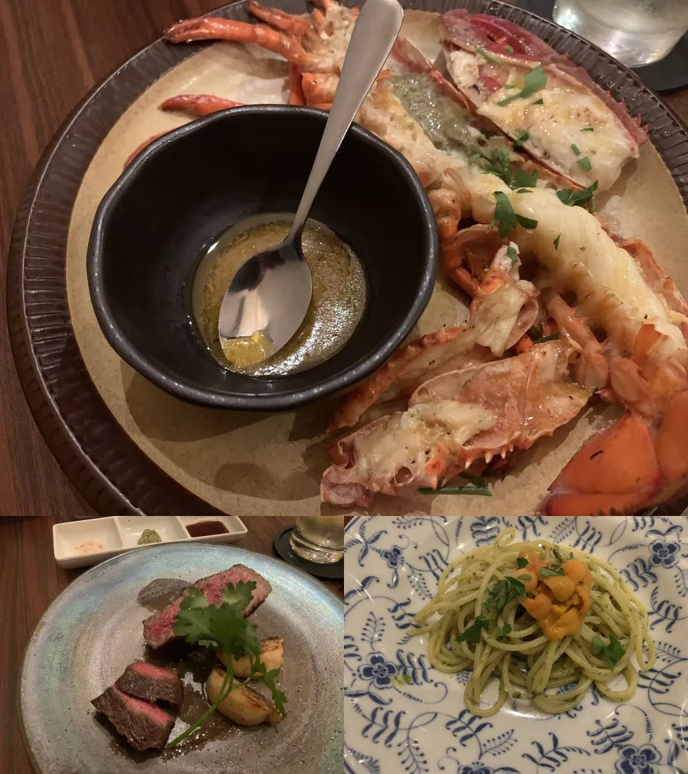 活きたオマール海老を店員さんがテーブルまでお持ちくださって「今日の料理で使う海老です」とご紹介してくださいました。